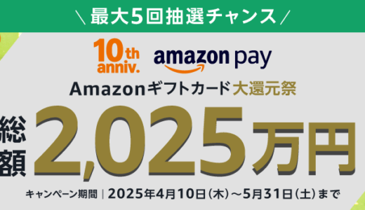Amazon Payのお得情報をピックアップしてご紹介します。Amazon Pay Amazonギフトカード大還元祭が開催中!2025年12月31日(水・大晦日)まで最大10万円全額還元