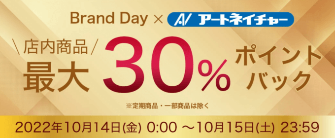 2022年10月14日(金)・15日(土)の2日間限定で「楽天ブランドデー(Rakuten Brand Day)」が開催され「×Brand Day」特典が実施されています。