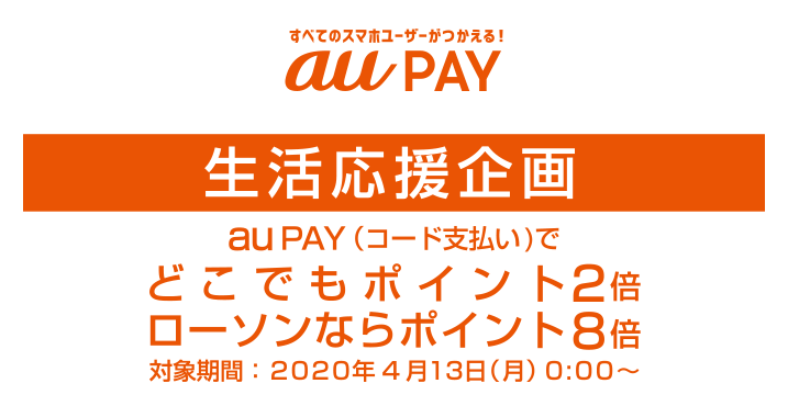 2020年4月13日(月)からau PAYが生活応援企画の実施をスタートし毎日au PAYを使える店でお得に利用できます。
