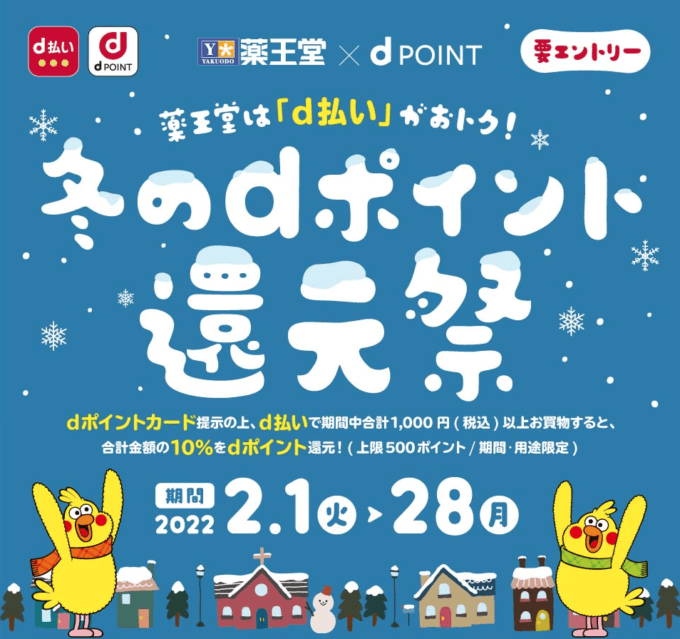 【終了】冬のdポイント還元祭が開催中!2022年2月28日(月)まで