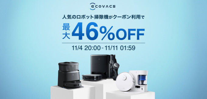 2024年10月1日(火)まで「ECOVACS ポイントキャンペーン」が開催されています。