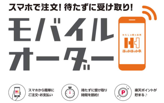 ほっかほっか亭のモバイルオーダーとはスマホ(スマホアプリ)でほっかほっか亭の商品を注文・支払い完了まで実行することでお店でスムーズに受け取れるサービスの名称です。
