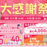 | キャンペーン 期間 | 2024年9月13日(金)16:00から 2024年9月22日(日)09:59まで |