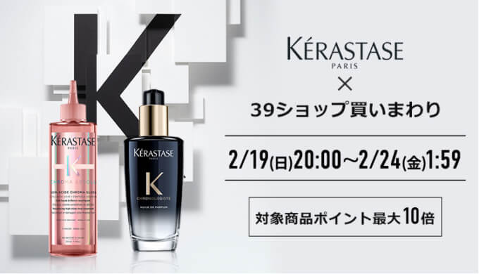 2023年2月24日(金)まで「楽天市場の39ショップ買いまわりキャンペーン」が開催され「KERASTASE×39ショップ買いまわり」特典が実施されています。