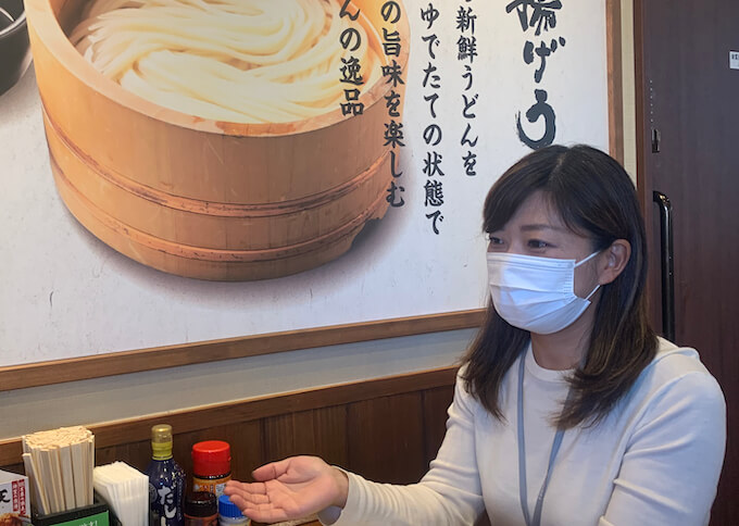 ですが、コロナ流行後はホールに人を配置して、テーブルの清掃や薬味台をこまめに片付けるなど、ケアするようになりました。