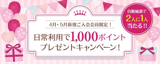 | キャンペーン名 | 4月・5月新規ご入会会員限定!日常利用で1,000ポイントプレゼントキャンペーン! |