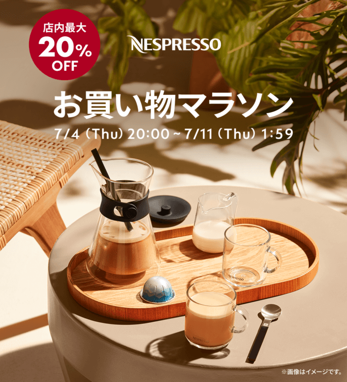 2024年7月4日(木)20:00から「NESPRESSO×Rakutenお買い物マラソン」特典が実施されます。