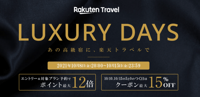 2021年10月15日(金)まで「楽天トラベルのLUXURY DAYS」が開催されています。