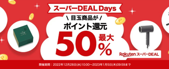 - 【終了】楽天スーパーDEAL Daysが開催中!2023年1月5日(木)まで
