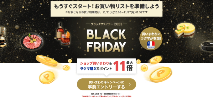楽天市場 ブラックフライデーの開催決定!2023年11月21日(火)からポイント最大44.5倍や人気有名ブランド連動特典など