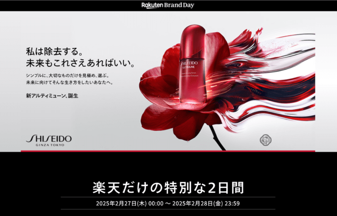 - 楽天ブランドデーが開催!2025年2月27日(木)・28日(金)の2日間限定で資生堂(SHISEIDO)の商品が超お得