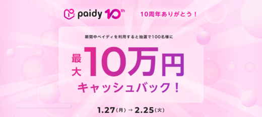 2025年10月22日(水)まで「Paidy 全額キャッシュバックキャンペーン」が開催されています。