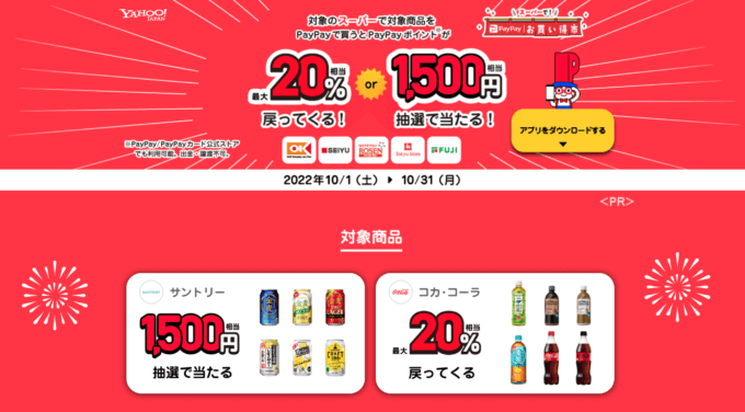 2022年10月は「PayPay×スーパーマーケット」の特典が実施されています。