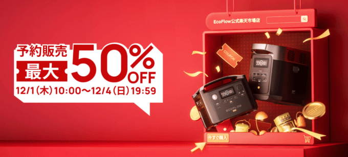 2025年4回目・年内ラストのRakutenスーパーSALE開催となります。2025年11月28日(金)からエントリー受付や最大10,000ポイント当たる「スーパーSALEスロット」に挑戦できます。キャンペーンエントリーはこちら。また2025年12月3日(水)から楽天モバイル契約者限定で「先行セール」に参加可能です。