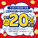 2025年12月1日(月)まで「楽天ペイアプリのポイントカードなら抽選でポイント20倍キャンペーン」が開催されています。
