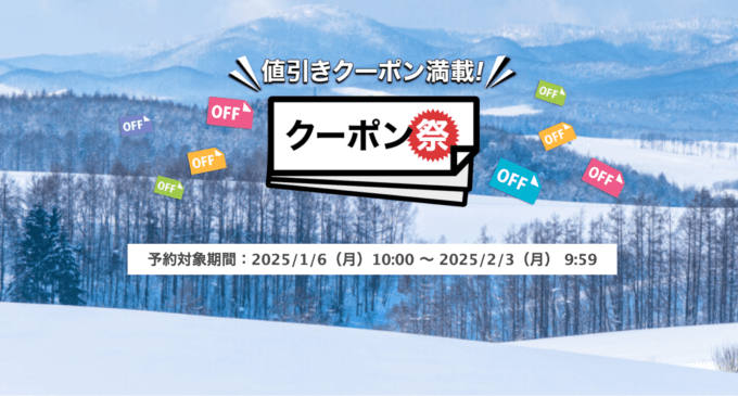 楽天トラベルのクーポン祭が開催中!2025年2月3日(月)までの予約対象期間