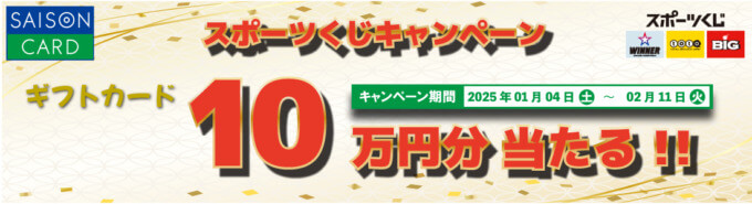 セゾンカードで2025年1月4日(土)から「スポーツくじキャンペーン」が開催されています。