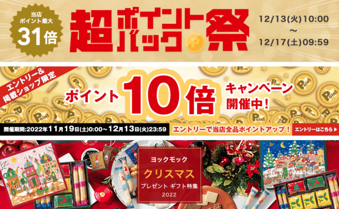 2022年12月17日(土)まで「楽天市場の超ポイントバック祭」が開催され「YOKUMOKU×超ポイントバック祭」特典が実施されています。