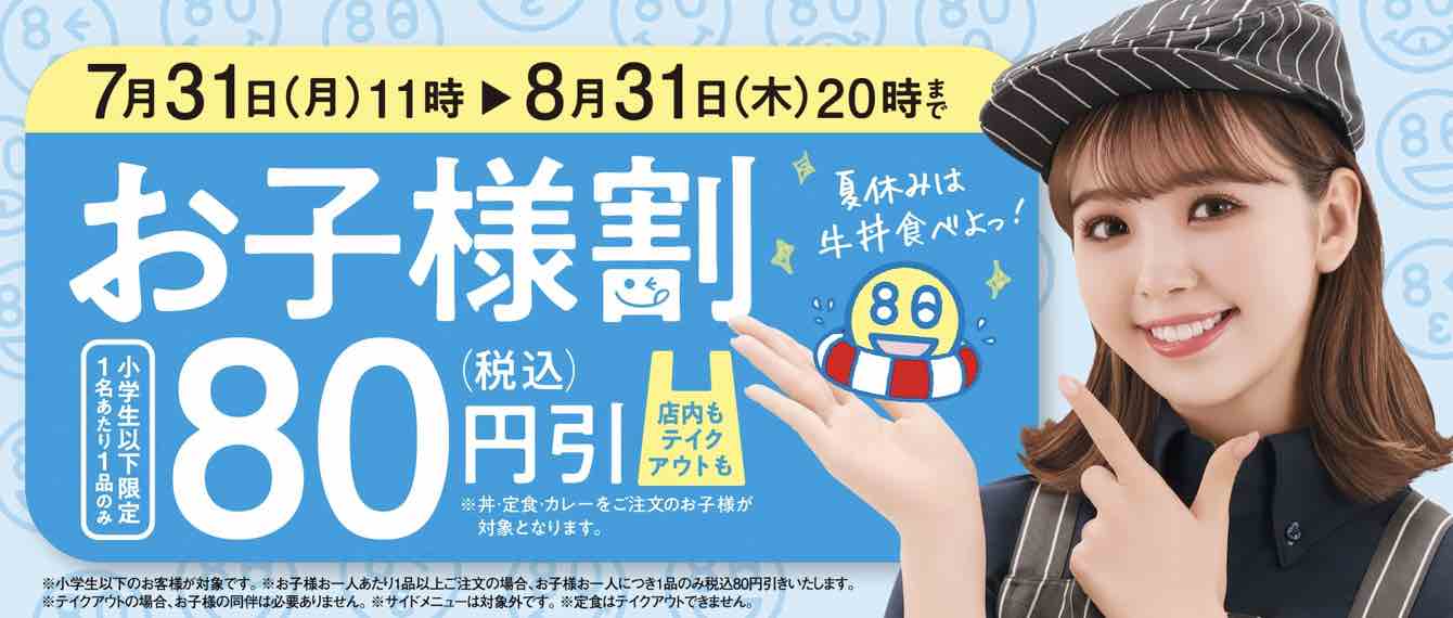 吉野家は 2023年7月31日(月)11:00から「吉野家 お子様割キャンペーン」を開催しています。